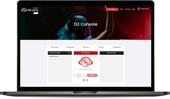 DJs Create their Profile using the Skrachy DJ Pro and in appears in the Skrachy Player App to thousands of listeners.